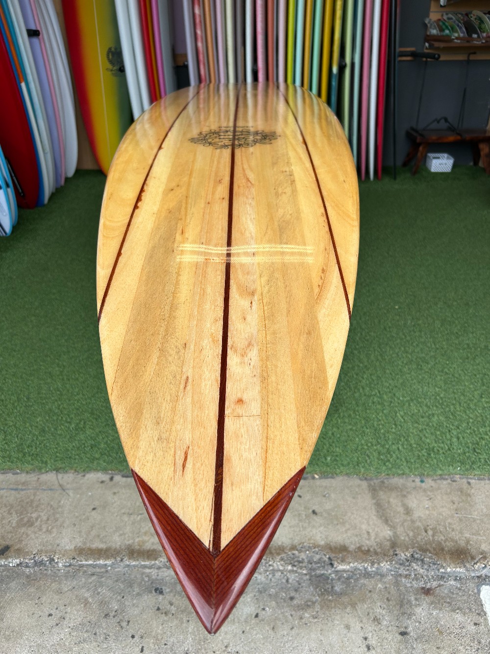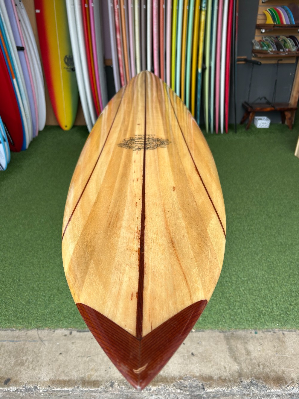 Built in 2006, this board represents a level of craftsmanship and material access that’s increasingly scarce. Lightweight for its size, incredibly smooth through the water, and visually striking, it rides as good as it looks—classic glide, effortless trim, and timeless lines.