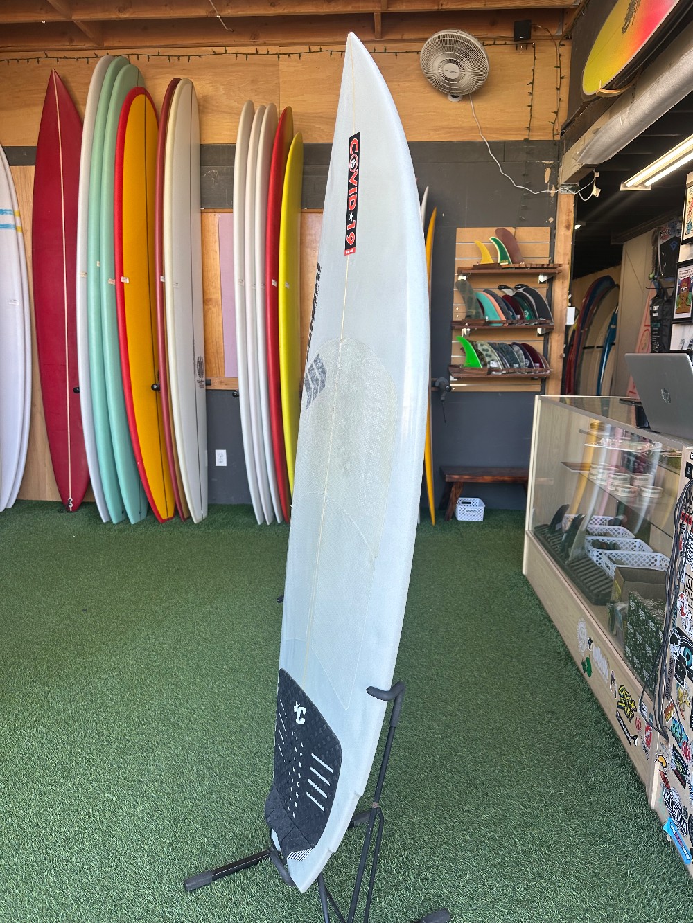 5’5” x 19 1/2” x 2 1/4”PolyFCS thrusterSwallow tail