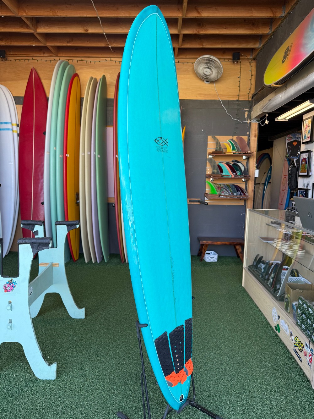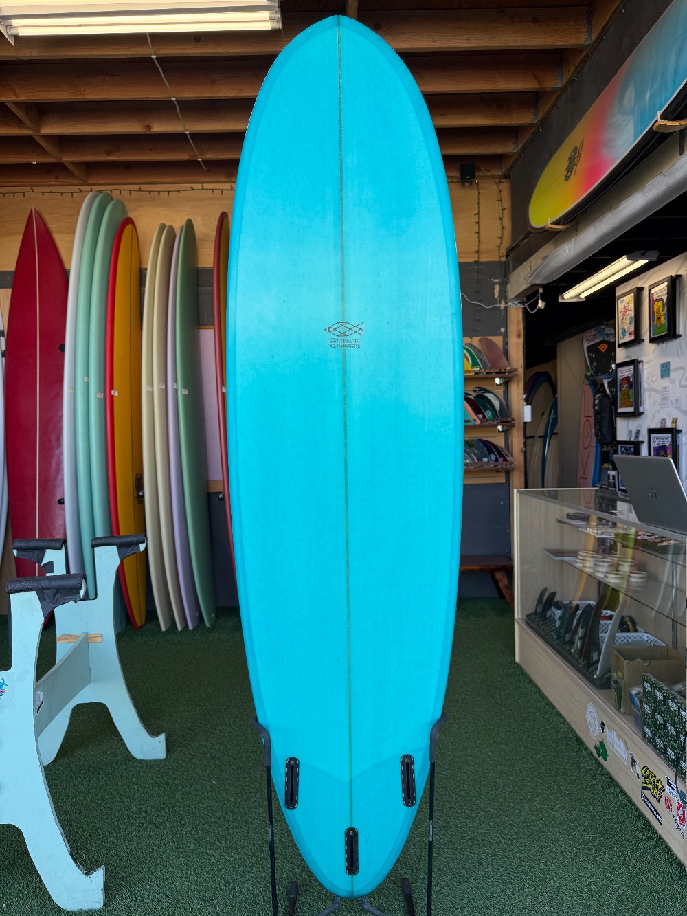 6’9” x 20 7/16” x 2 11/16” Poly Futures thruster Rounded pin tail