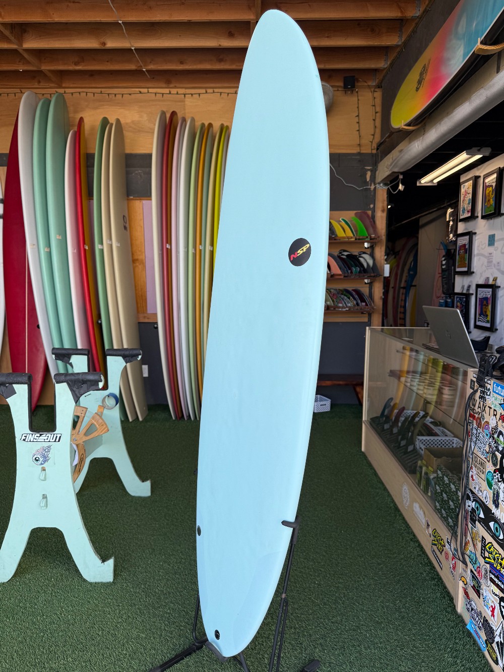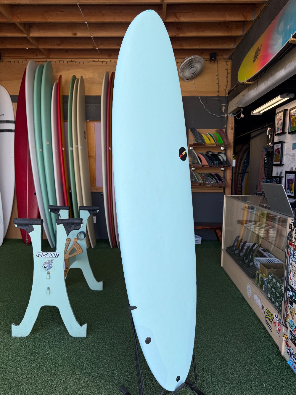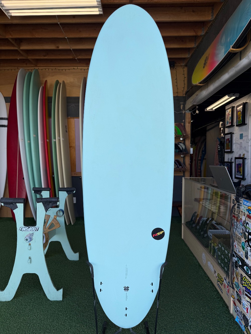 6’8” x 21” x 2 5/8” 42.1LEPS/Epoxy FCS thruster fins Round tail