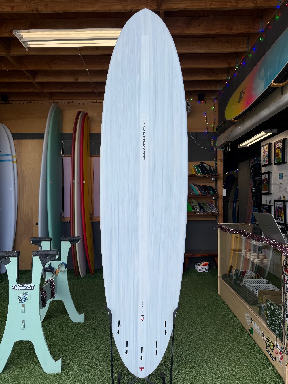 7’10” x 21 1/4” x 2 3/4” 50.6LEPS/EpoxyFCS2 5 fin Pin tail
