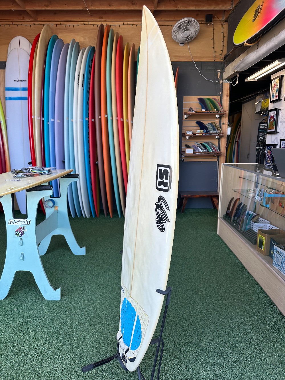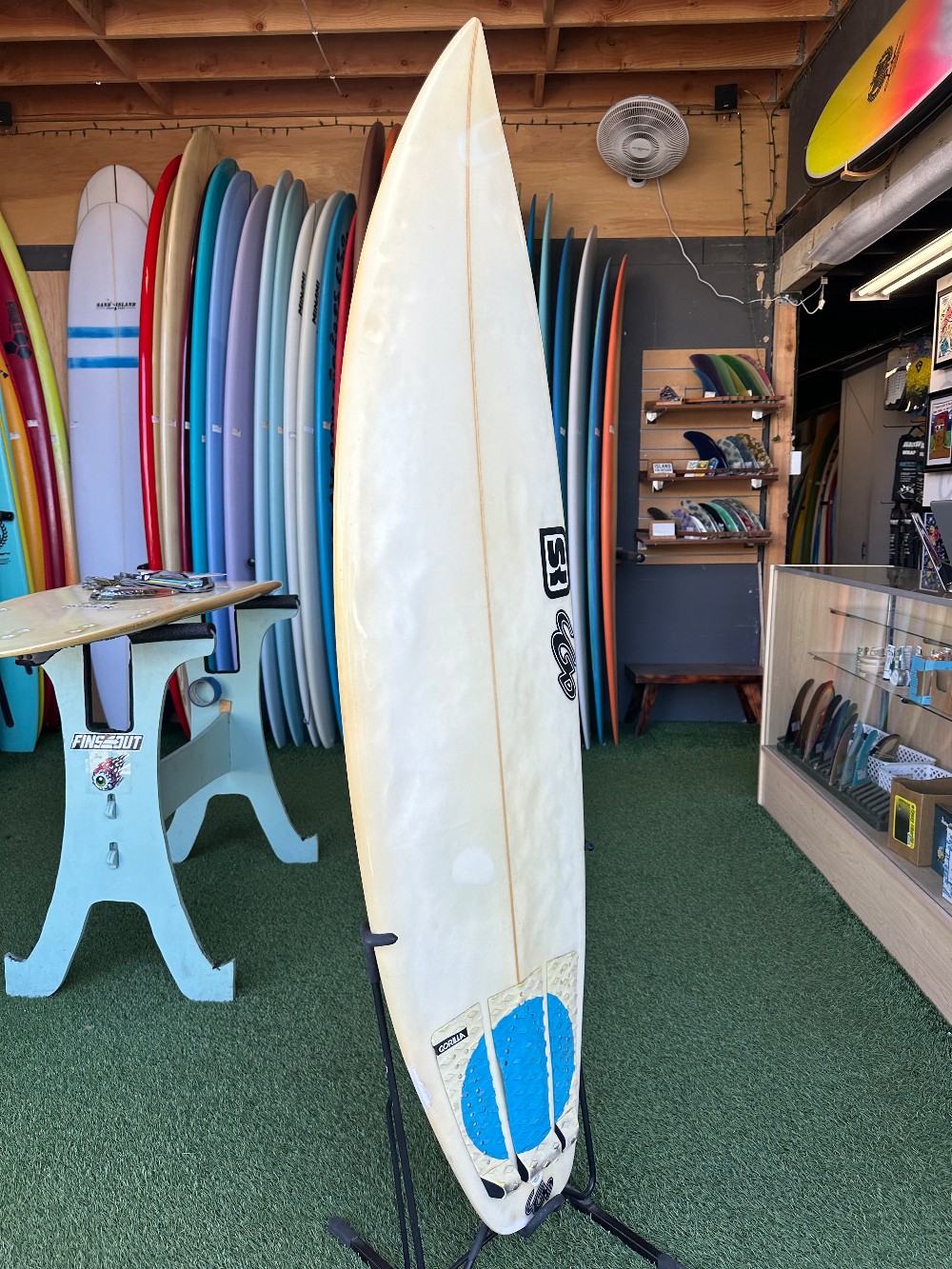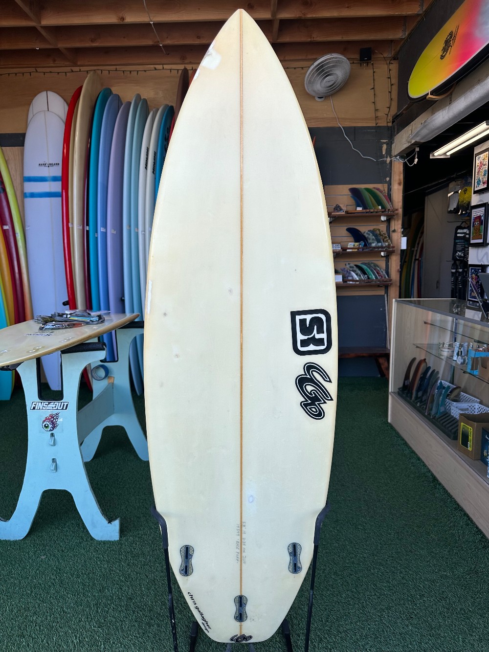 5’8” x 19” x 2.38” 28LPolyFCS2 thrusterRounded square tail