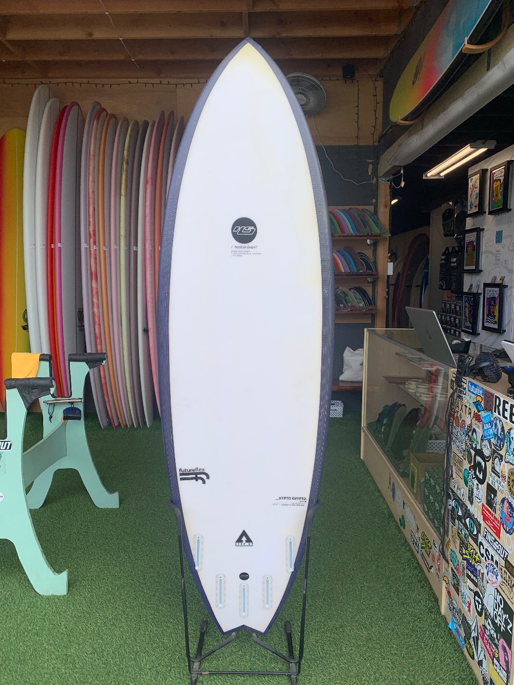 6’2”x 20 1/4” x 2 11/16” 36.58LEpoxyFutures 5 finSwallow tail