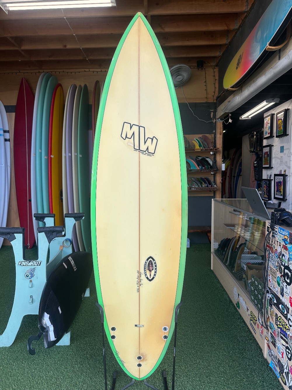 6’6” x 19 1/4” x 2 9/16”PolyFCS thrusterRounded pin tail